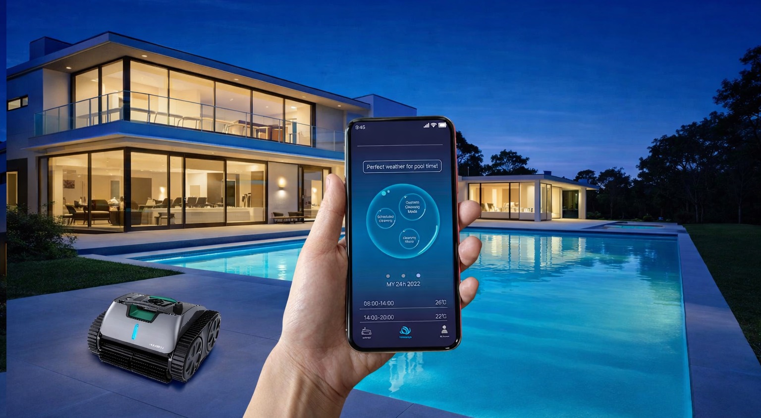 Bezprzewodowy odkurzacz basenowy Aquajoy Cyclone C1 Pro to nowoczesny, automatyczny robot do czyszczenia basenów o powierzchni do 150 m², niezależnie od ich kształtu. Urządzenie pracuje w pełni autonomicznie – nie wymaga połączenia sieciowego. Wyposażone w zaawansowane czujniki, żyroskopy i inteligentny system nawigacji, skutecznie dociera do trudno dostępnych miejsc. Mocne silniki, wydajna pompa oraz dwie szczotki walcowe z gumy gwarantują skuteczne usuwanie piasku, liści i osadów z dna, ścian oraz linii wodnej. Czas pracy wynosi do 150 minut, a wydajność to 11,5 m³/h. W zestawie znajduje się ładowarka i haczyk do wygodnego zanurzania robota w wodzie.