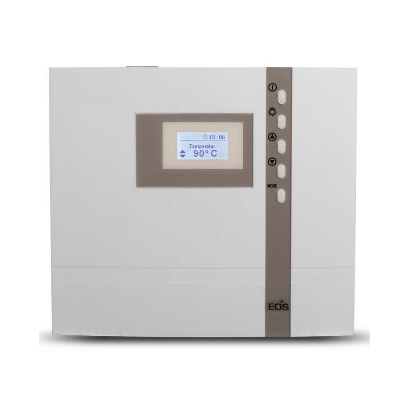 Sterownik do sauny EOS Econ H1 to nowoczesny panel sterujący przeznaczony do sauny suchej i wilgotnej z piecem elektrycznym o mocy do 9 kW. Sterownik do sauny EOS Econ H1 umożliwia precyzyjne ustawienie temperatury do 115 °C w saunie suchej oraz do 70 °C w trybie wilgotnym, co pozwala dopasować warunki do indywidualnych potrzeb. Panel posiada czytelny wyświetlacz LCD i intuicyjne menu, dzięki czemu obsługa jest prosta i wygodna. Sterownik do sauny EOS Econ H1 pozwala ustawić czas pracy pieca do 6 godzin oraz sterować oświetleniem i wentylacją. Wbudowane funkcje bezpieczeństwa, takie jak blokada klawiatury i kontrola temperatury, zwiększają komfort użytkowania. Urządzenie montuje się na ścianie poza kabiną sauny. Sterownik do sauny EOS Econ H1 to solidne i funkcjonalne rozwiązanie do domowej sauny.