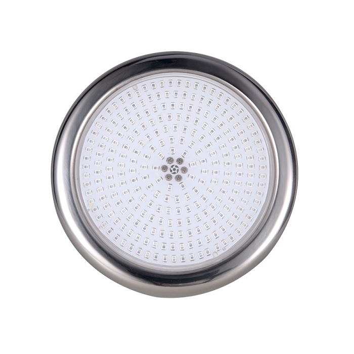 Reflektor Aquaviva LED227C na 252 diody LED do basenów i fontann. Część przednia wykonana jest w całości ze stali nierdzewnej 316. Reflektor zapewnia doskonałe oświetlenie oraz jest łatwy w montażu i obsłudze. Zgodny jest z normą wodoodporności IP68. Posiada gwint 1 1/2″ (50 mm) do szybkiego montażu w odpowiednich kształtkach lub elementach montażowych. Zestaw zawiera silikonowe pierścienie zaciskowe.